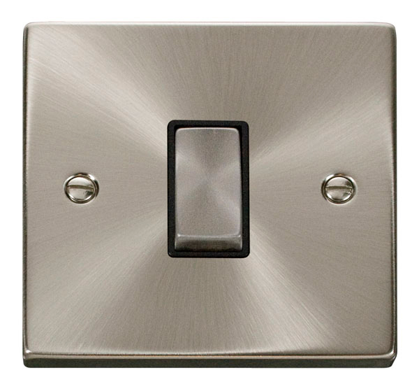 WebSparky Home | Wiring Accessories Sockets and Switches | Click Deco | Click Deco Satin Chrome Range | Deco 10 Amp Intermediate Switch Satin Chrome Black insert