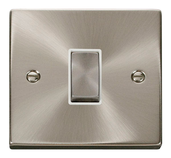 WebSparky Home | Wiring Accessories Sockets and Switches | Click Deco | Click Deco Satin Chrome Range | Deco 10 Amp Intermediate Switch Satin Chrome White Insert