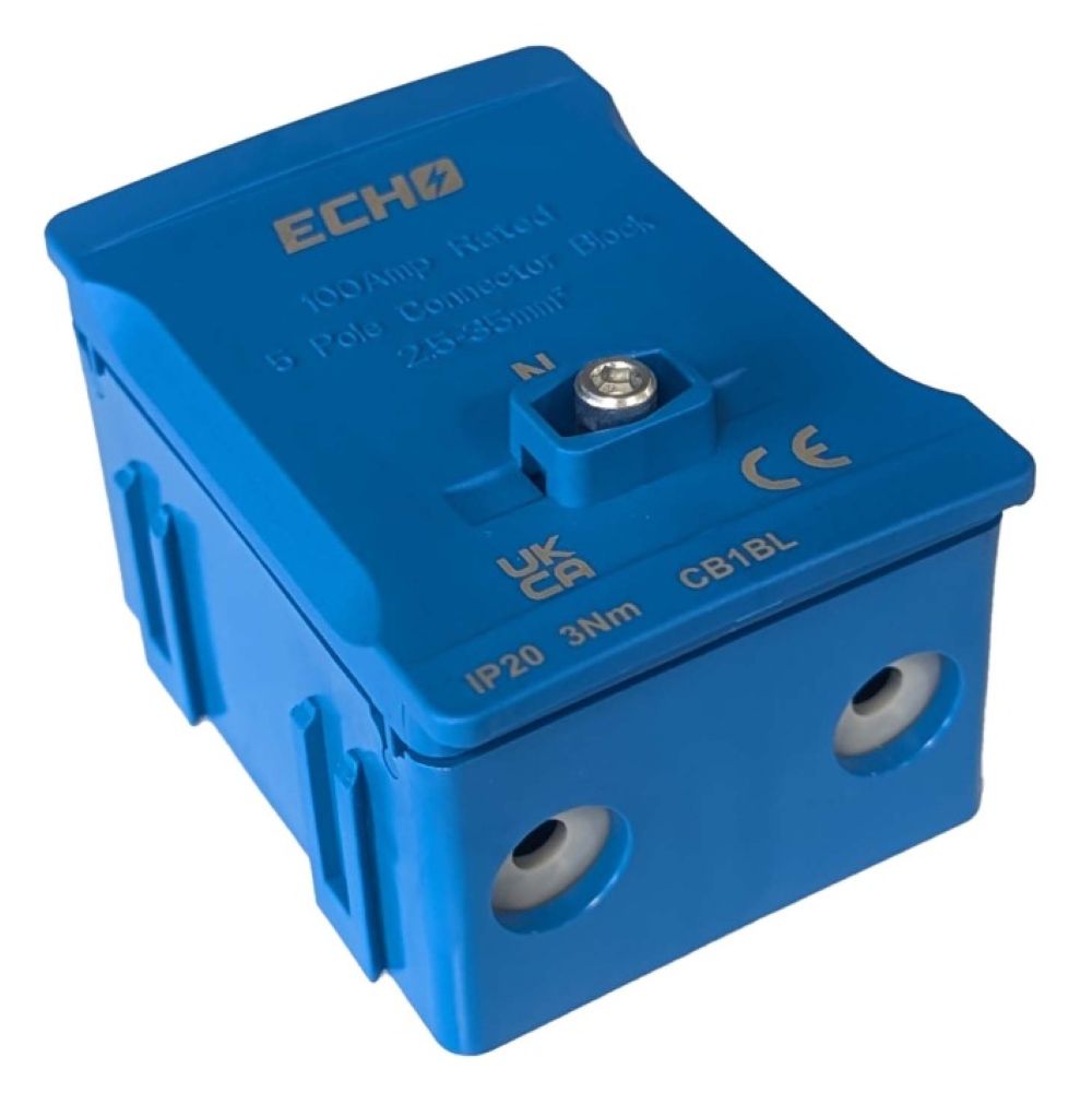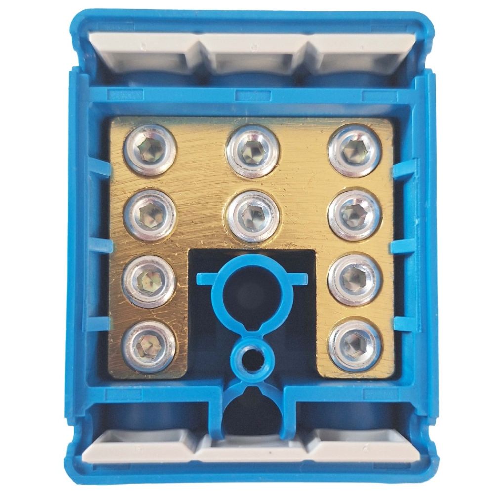 WebSparky Home | Installation Materials and Equipment | Miscellaneous Installation products | Deligo 100A 5 Way Connector Block/Distribution Terminal Blue