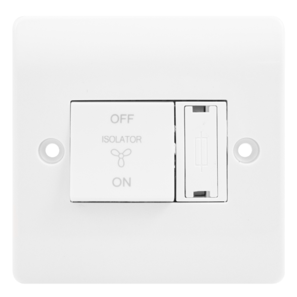 WebSparky Home | Wiring Accessories Sockets and Switches | Click Mode White Plastic | Scolmore Mode 10A 3 Pole Fan Isolation Switch White with 3A Fuse